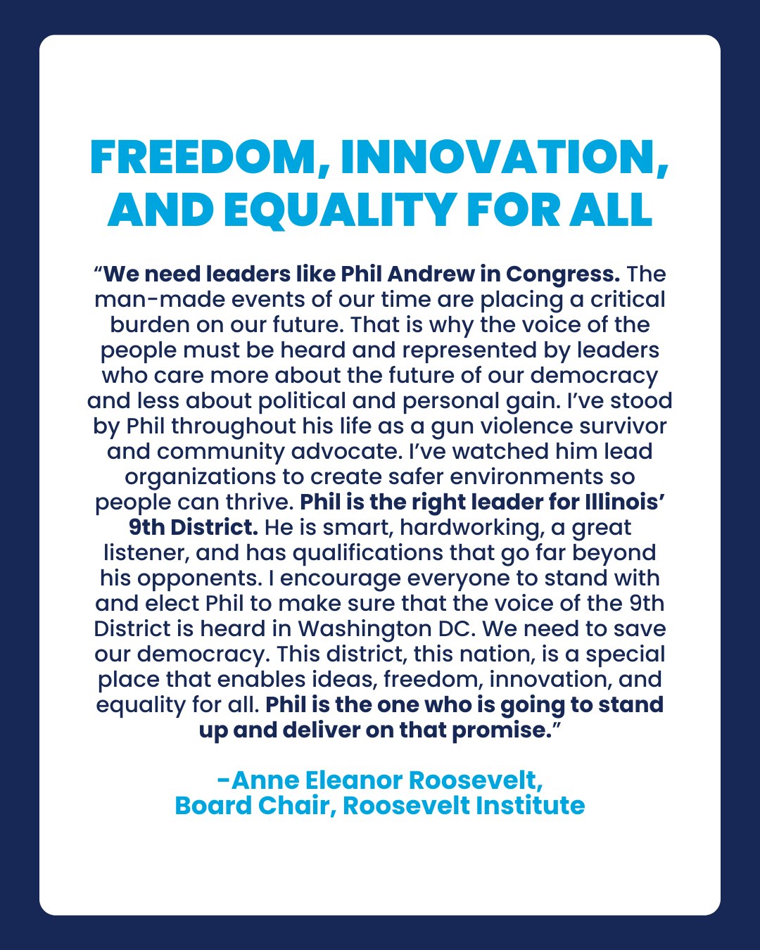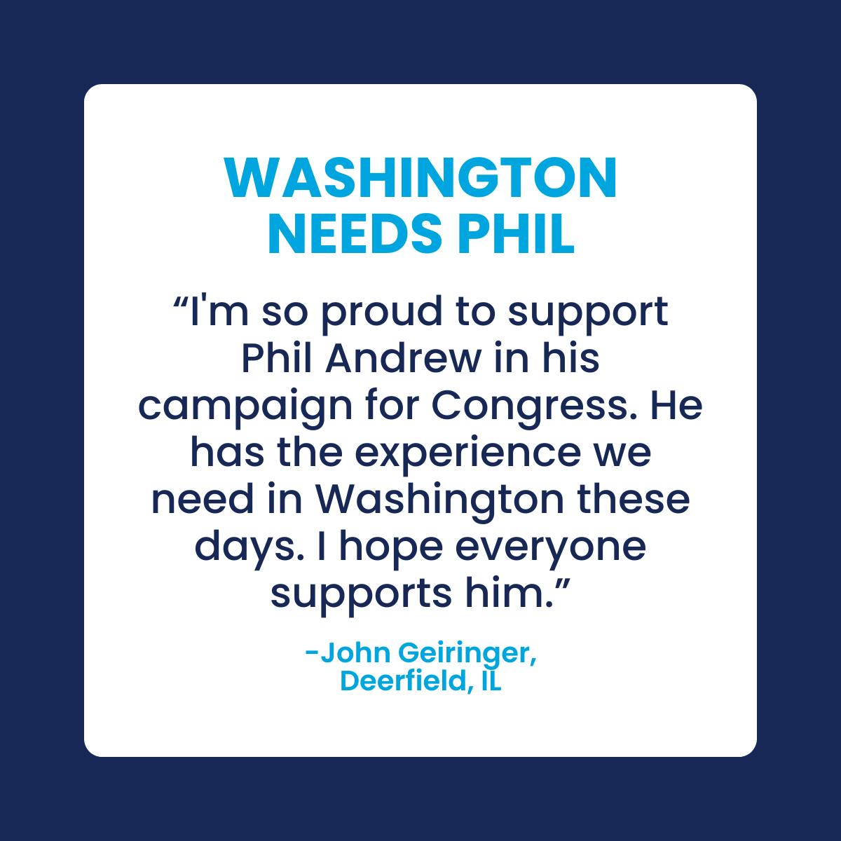 Trusted. Tested. Community-driven. Phil Andrew’s leadership is backed by neighbors across Illinois’ 9th District and beyond.